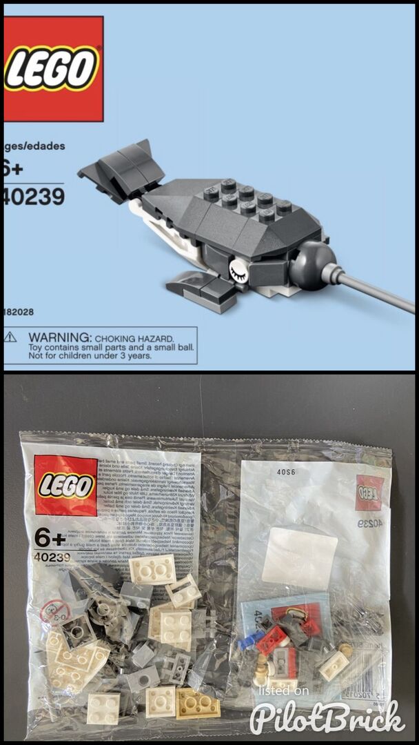 New in Sealed Poly Bag The LEGO Monthly Mini Model Build Set 40239 (Narwhal) was released in January 2017. This 45-piece polybag set features a small buildable narwhal known for its cute design using grey, white, and tan pieces