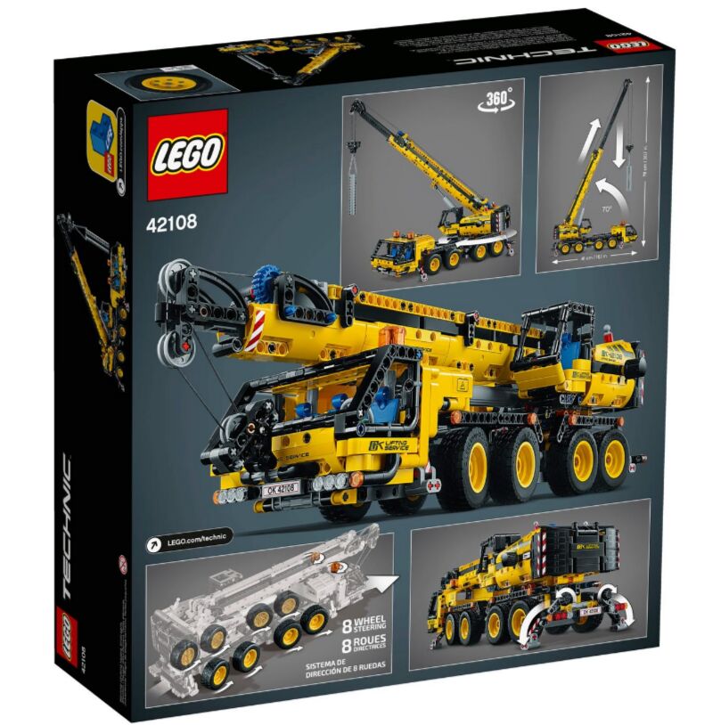 An action-packed set for crane toy fans. Anyone who loves discovering how mega-machines work will have lots of fun with this LEGO® Technic™ 42108 Mobile Crane. It’s a challenging build, perfect for LEGO Technic fans looking for a model packed with functionality. A feature-packed crane truck for construction site fun With its classic black and yellow design, this model looks just like the real thing. And with a mighty range of realistic features, it operates just like a real crane too. First, steer and drive the vehicle to the right spot. Then use the outriggers to secure the crane in place. From the crane cabin, raise the boom and extend the telescopic arm – see how high it reaches! Then use the hoist to carry the concrete pillar – great for role-play, or just for testing what this mega-crane can do. An immersive and rewarding construction site toy This is a challenging and advanced build from the LEGO Technic universe, bringing the world of engineering to life. See how a real crane works with this action-packed LEGO® set for construction fans. Steer the truck, put out the outriggers, raise the boom and hoist the concrete pillar. There’s plenty to learn about engineering and movement with this cool building toy. 8-wheel steering, 4 individually controlled outriggers, 2 cabins and super-high telescopic arm all add up to create an awesome crane! Have fun building this challenging model. Then explore what all the different features can do. Use thepillar to put the crane through its paces before moving the truck to the next job. Crane fans aged 10+ will love this amazing LEGO® Technic™ (42108) set. It’s a great choice if you’re looking for the best gifts for anyone who loves LEGO Technic and is ready for a new building challenge. The thing you'll notice about this LEGO® crane is its size. With a 30” (78cm) crane arm, it's certainly tall! Its impressive dimensions make this a super display model at 18” (48cm) long and 4” (11cm) wide. No batteries are needed for this crane truck toy. Just bring curiosity and a desire to build to get started! Eager to get building? Let’s go! With easy-to-follow instructions included in the box, the fun starts straightaway. Open up a whole new world of building fun for LEGO® fans young and old with LEGO Technic™. With cool vehicle designs and awesome functions, the fun goes on long after the model is built. Construction toys need to be tough. So, it's good to know LEGO® Technic™ sets meet the highest industry quality controls. That means building kits that connect easily every time. LEGO® Technic™ pieces are tested to the extreme to create toy building sets that meet the highest global safety and quality standards. Great news if you're looking for the best gifts for a LEGO fan.