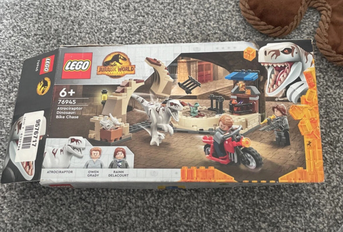 Seller: Kirsty Flag GB Jurassic world Atrociraptor Dinosaur Bike Chase