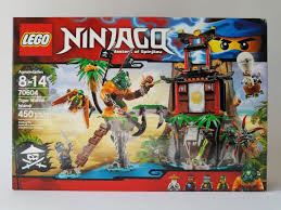 The action-play possibilities are endless with this detailed Tiger Widow Island model, featuring a tower with a Ninja mission room and opening cave, plus a falling palm tree function and posable spider. Defend the island from Sqiffy's pirate flyer and the Dogshank big figure's attacks, dropping coconuts on her from the tower and Sensei Wu's hot air balloon. Includes 4 minifigures: Nya, Cole, Sensei Wu and Sqiffy, plus a Dogshank big figure. Includes 4 minifigures: Nya, Cole, Sensei Wu and Sqiffy, plus a Dogshank big figure. Tiger Widow Island features a tower with a coconut-dropping function, vine for a Ninja to swing down from, a Ninja mission room with swinging lantern, Ninjago map and mission instruction elements, a cave with lever-operated opening entrance and hidden crystal and golden elements, plus Ninja decorations, palm leaf and translucent fire elements. The island also features a bridge, ladder and falling-palm-treefunction to knock over intruders. The pirate flyer attaches to the Sqiffy minifigure's back and has adjustable wings, blades and an attachment point for the Djinn Blade. Drop coconuts on the pirate invaders from Sensei Wu's hot air balloon. The Dogshank big figure has posable arms and comes with a chained anchor weapon and 2 adjustable pirate flags on her back. The spider features pincers, posable legs and posable stinger. Other weapons include a translucent green Djinn Blade with ‘trapped Lloyd' element, Nya's 2 golden katanas, Cole's silver katana, Sensei Wu's battle staff and Sqiffy's 2 guns. Accessory elements include Sensei Wu's coconuts, binoculars and flyer helmet, and Nya's vial of spider poison. Nya minifigure comes with a special water Ninja outfit. Cole minifigure features special ghost decoration. Sensei Wu minifigure comes with a spare flying hat with goggles. Recreate and role-play epic scenes from the NINJAGO™: Masters of Spinjitzu TV show. Tiger Widow Island measures over 9” (25cm) high, 12” (33cm) wide and 6” (17cm) deep. Sensei Wu's hot air balloon measures over 3” (8cm) high, 1” (5cm) long and 1” (3cm) wide. Spider measures over 1” (3cm) high, 2” (6cm) long and 2” (7cm) wide. Pirate flyer measures over 1” (3cm) high, 1” (5cm) long and 3” (9cm) wide. Dogshank big figure stands over 2” (7cm) tall.