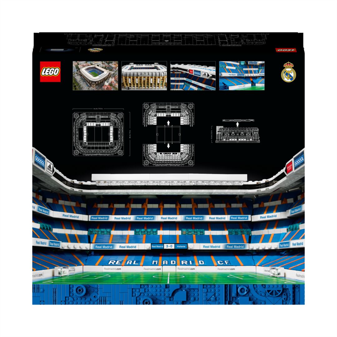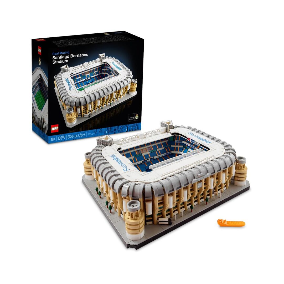 A build to capture the heart of any Real Madrid fan. This LEGO Real Madrid - Santiago Bernab u Stadium (10299) building kit for adults lets you build an accurate scale model version of one of the most celebrated football stadiums of all time. So kick back and take your time discovering all the details packed into this collectible model. Match-day drama Relive experiences of this legendary stadium as you build the ticket office, seating, tunnel, dugout and pitch. Celebrate historic moments with the scoreboards, goals and banners. Enjoy building iconic details like the 4 corner towers, plus the exterior walkway and stairwells. The model splits in half and the roof lifts off, so you can view the interior before placing your model on display. Welcome to your zone This set is part of a collection of LEGO buildable models for adults. The third in the series of LEGO football stadiums, it makes a rewarding project or top gift idea for any Real Madrid fan or collector of football memorabilia. - A build for adults - Build a tribute to your football heroes as you craft all the details of this LEGO Real Madrid - Santiago Bernab u Stadium (10299) model building set - Modelled on the original stadium - The LEGO designers have taken care to incorporate all of the iconic details from the real-life Real Madrid football stadium into this scale model version - Recognizable features - Spot all the details of the Santiago Bernab u Stadium, including the pitch, goals, tunnel, dugout, scoreboards, banners, seating and stairs - Match-day details - Finishing touches include a printed Real Madrid logo and the team bus - Comes apart for viewing - The model splits in half and the roof lifts off, allowing you to view the interior What's in the box 1 x LEGO® Real Madrid – Santiago Bernabéu Stadium 10299 Building Kit (5,876 Pieces)