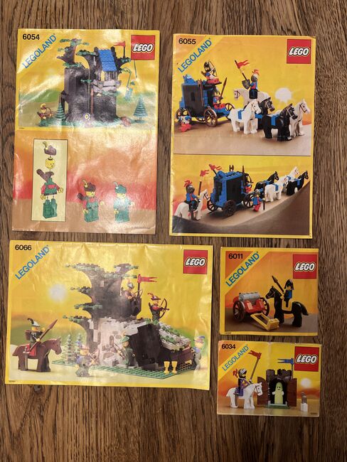 Lego Knight / Robin Hood - Lego Knight / Robin Hood set consisting of: 6066, 6054, 6055, 6011, 6034 Parts all present, small parts may be missing. Hats of figures missing Condition is good, see pictures. With instructions. Sets can also be sold individually.