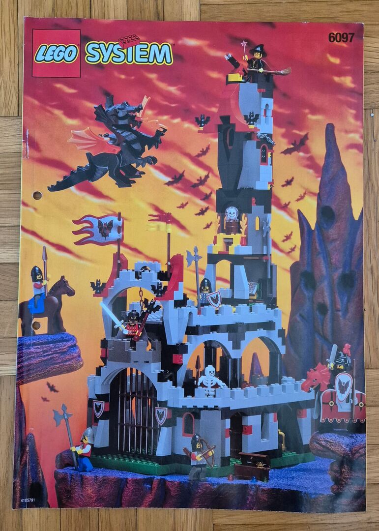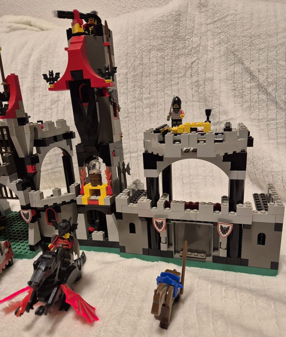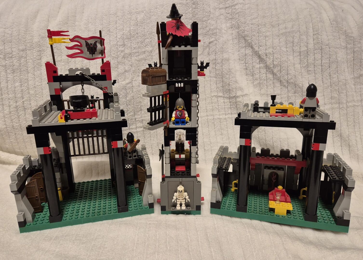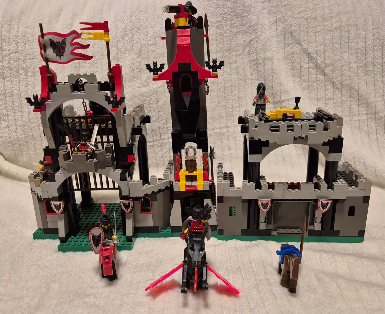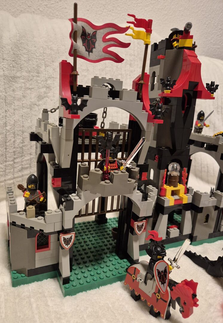 LEGO Knight's Castle, 6097 Castle of Count Fledermaus - Selling a used Lego Castle set, the fascinating Fortress of Darkness (6097) from 1997! This set is a must for every Lego and Castle fan. With lots of details and functions. The set has been played with and is in good condition. All figures are present! Only the witch's wand and a halberd that has been replaced by a sword are missing. It was one of the first Lego sets I had as a child and it was a lot of fun to play with.