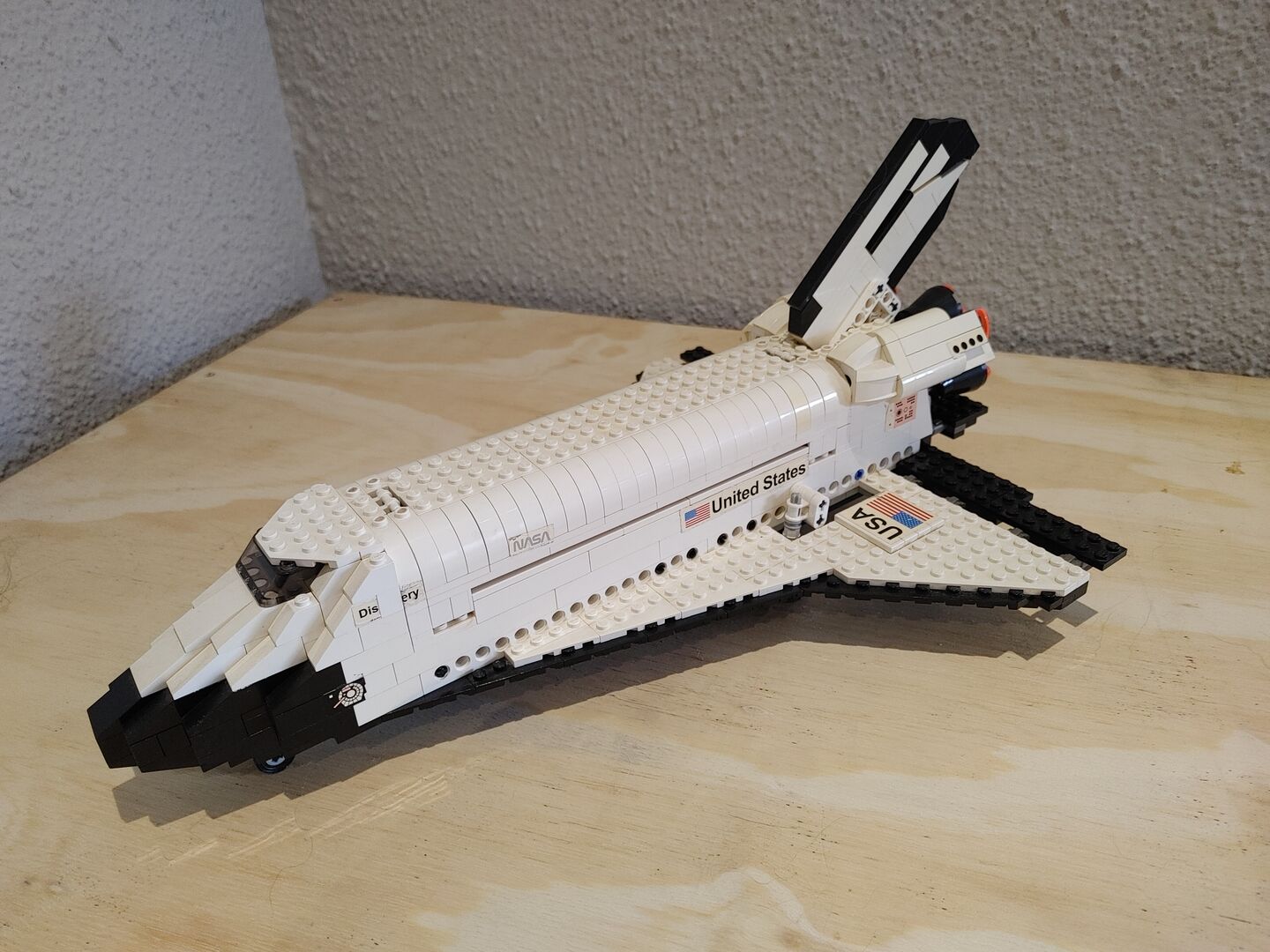 Classic lego space edition Discovery Shuttle. All pieces present and all mechanical pieces in perfect working order. Unfortunately the box isnt present anymore. Comes with the satellite and all the satellites pieces. Stickers are worn and faded here and there but otherwise in amazing condition.