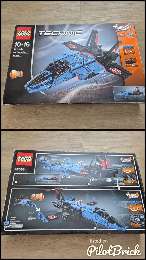 Great condition, only used twice (one for each build). Lego Technic 42066 Air Race Jet. Comes in the original box, which is a bit worn on the edges over time. Booklet included. Stickers have been applied. No pieces missing.